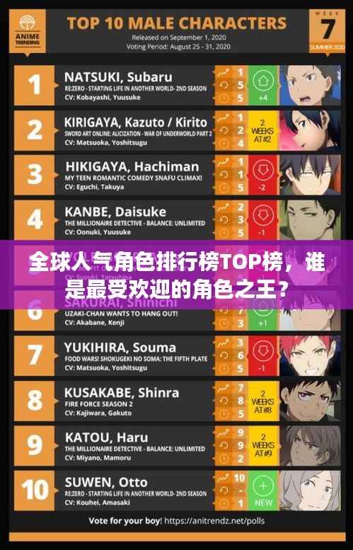 全球人气角色排行榜TOP榜,谁是最受欢迎的角色之王?